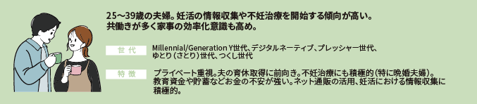 女性のライフステージ(年齢)とライフコース(家族構成や就業状況)をかけ合わせ、10の代表的な女性クラスターに分類しています。このフレームにより、表面的な属性だけでは見えにくい、女性たちの生活背景や価値観、そして“消費トレンド”を、とらえることができます。